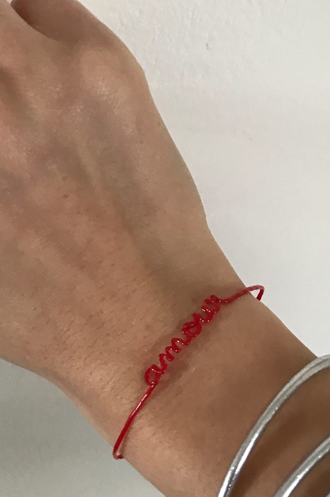 Tendance ou bien réelle envie de les porter comme ceci. Pour moi, les bracelets à message se portent en accumulation avec toutes sortes d’autres bracelets. Désormais les bracelets se mêlent les uns aux autres et on les mélange avec différents modèles, de plusieurs tailles, on ose mixer les matières et les couleurs.
