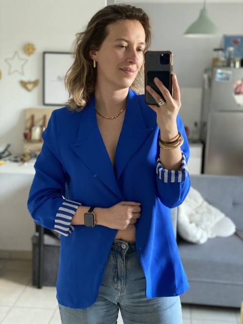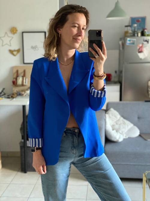 - Le blazer est disponible en taille 1 (36/38) et taille 2 (40/42)