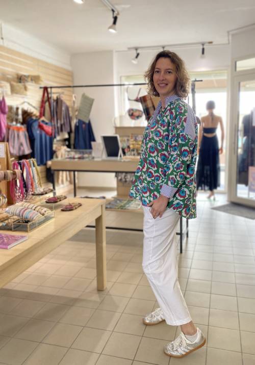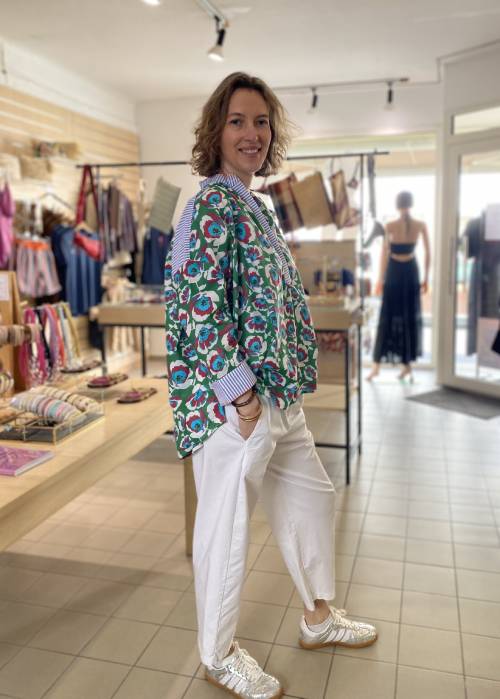 • Joli détails de rayures sur le col, les épaules et aux poignets