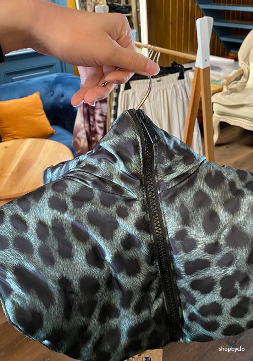 Disponible dans les coloris suivants : chocolat, bleu canard et léopard vert/gris