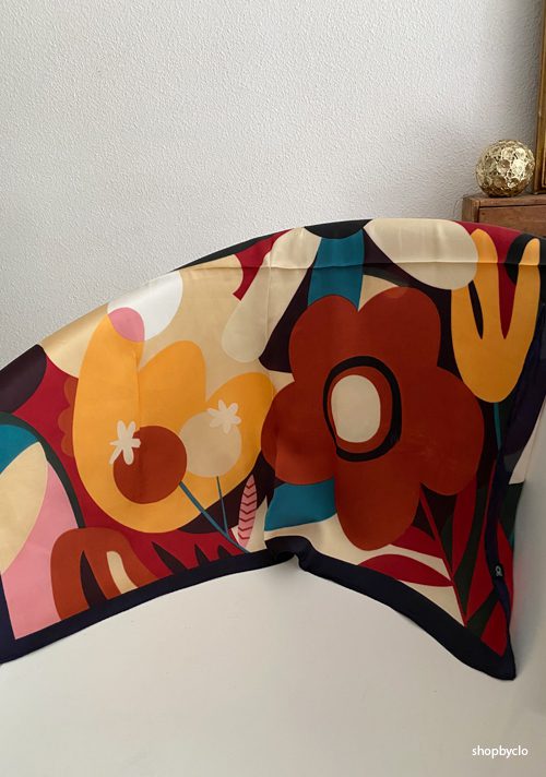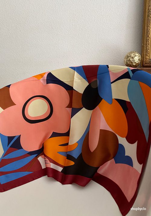 Une touche de poésie à nouer partout. Ce carré allie l’élégance naturelle de la soie à la souplesse de la viscose, pour un rendu fluide, léger et agréable sur la peau.