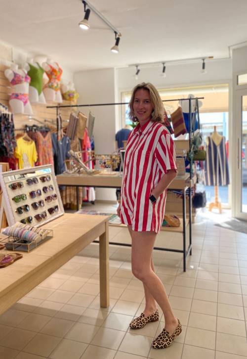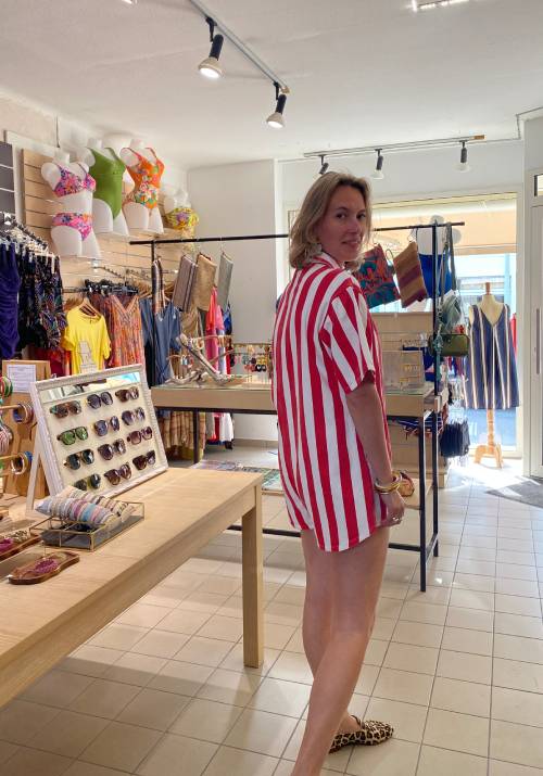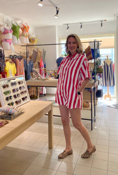 Craquez pour le combishort à rayures blanches et rouges Charly, une pièce tendance au look casual chic.