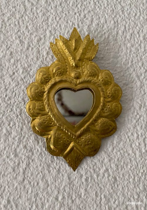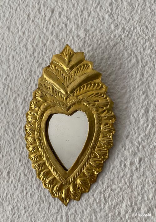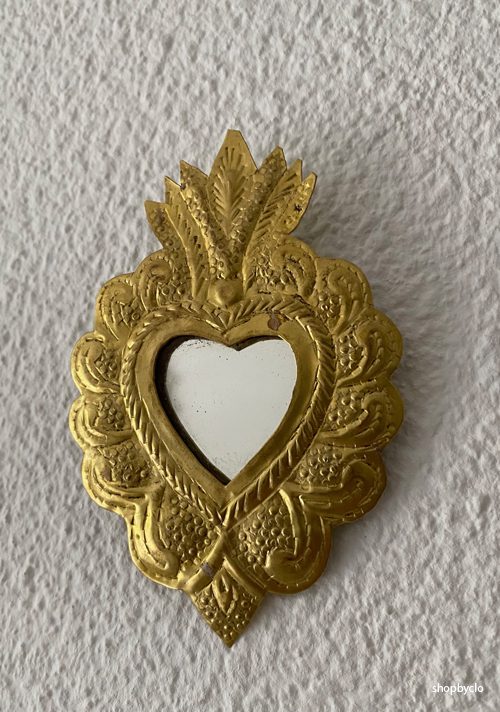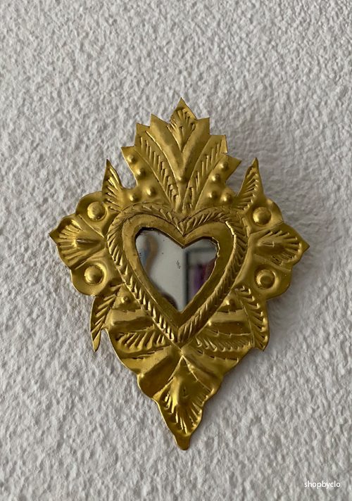 Un coeur doré, symbole d’amour et de protection. Chaque miroir ex-voto est une pièce artisanale rapportée du Maroc, pensée pour illuminer votre intérieur avec une touche d’âme et d’authenticité.