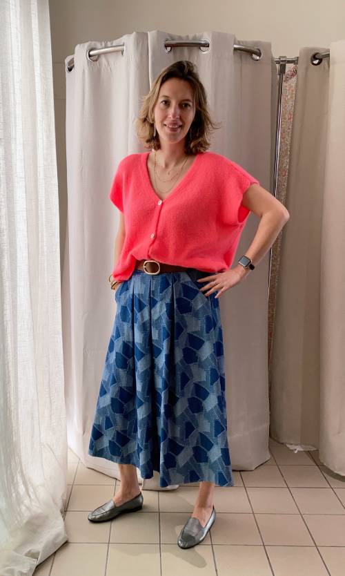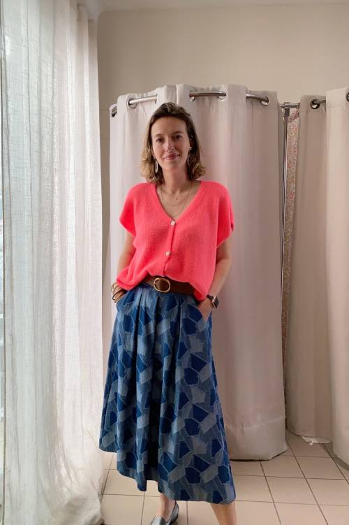 Nouveau coup de coeur pour cette jupe en jean effet patchwork de votre marque Italienne préférée.
